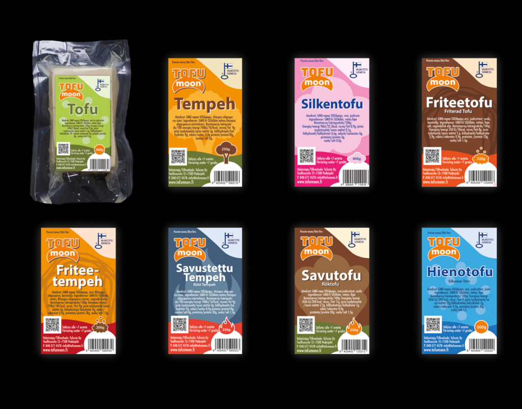 - Etiketit ja pakkaukset Tofu Moon- ja HABA-tuotteille